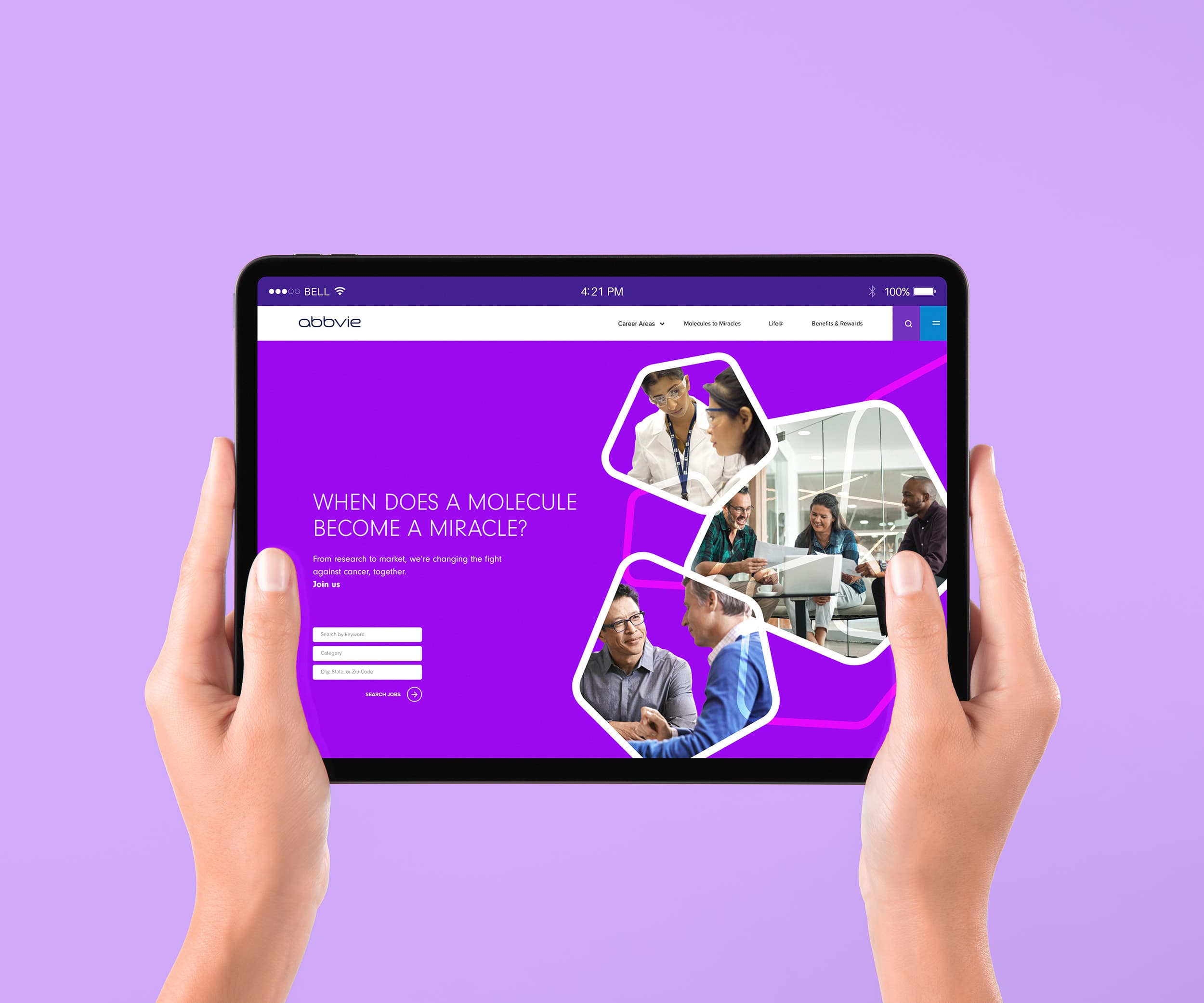 Results: The employer brand strategy closed the awareness gap and gave AbbVie stories that transcended what people did — it connected why they felt they were in the miracle business, too. Consistent expression across touchpoints built trust with candidates. What inspired people to move forward was exactly what employees experienced.